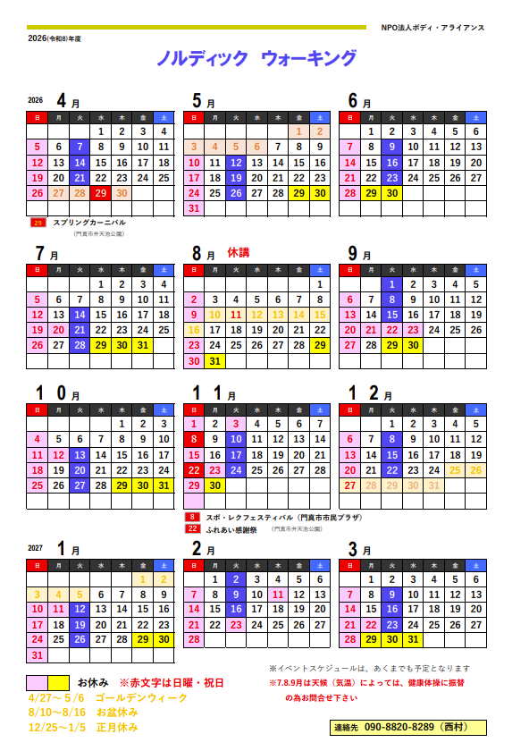 ※火曜日の「ノルディックウォーキング」からお申込みください