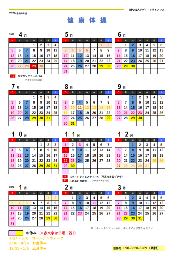 雨天:スタジオBLACK DUCKSにて健康体操を行います